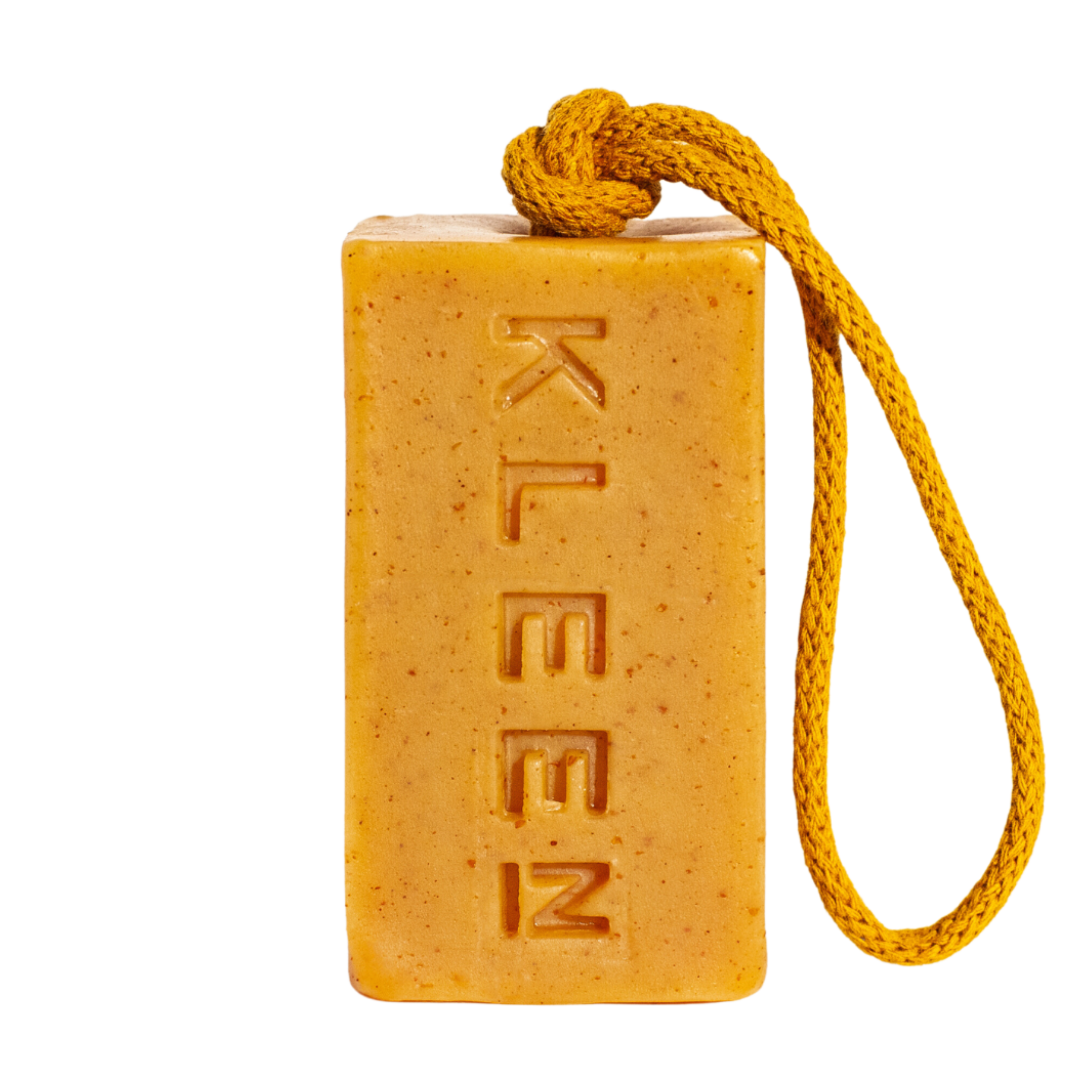A Gently Exfoliating Natural Citrus Soap on a Rope with Turmeric, Oatmeal and Citronella, Handmade Vegan Soap. Weight min. 160g.