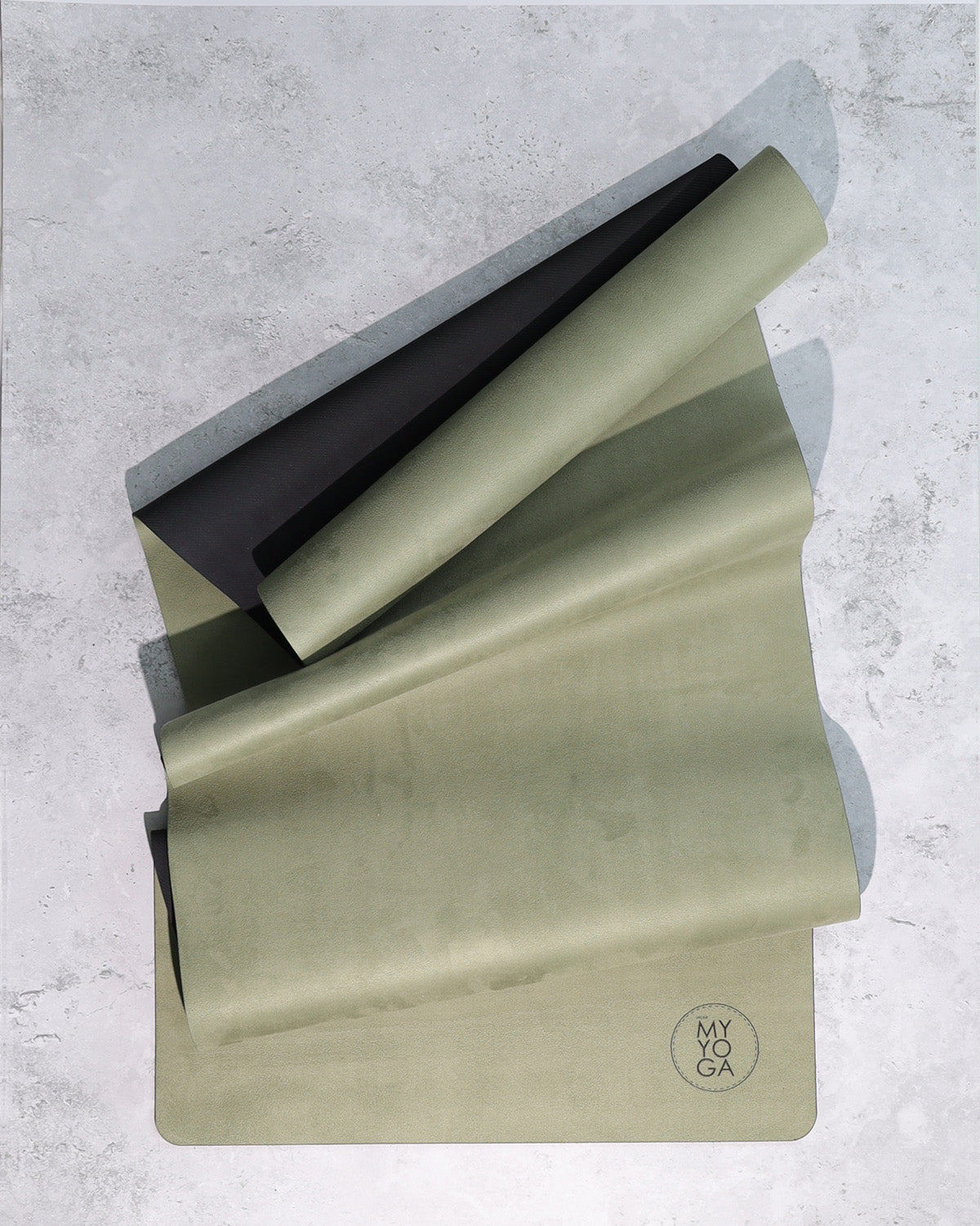 Our mats are made of natural rubber with a top layer of vegan suede. The suede’s layer of the yoga mat Green gives you a grip like a towel but not the “mess” from a towel, the more you sweat – the better the grip. The natural rubber provides the ultimate grip on the floor. Easy to clean with a soft cloth and water. Washable in cold water, mild detergent and no bleach.