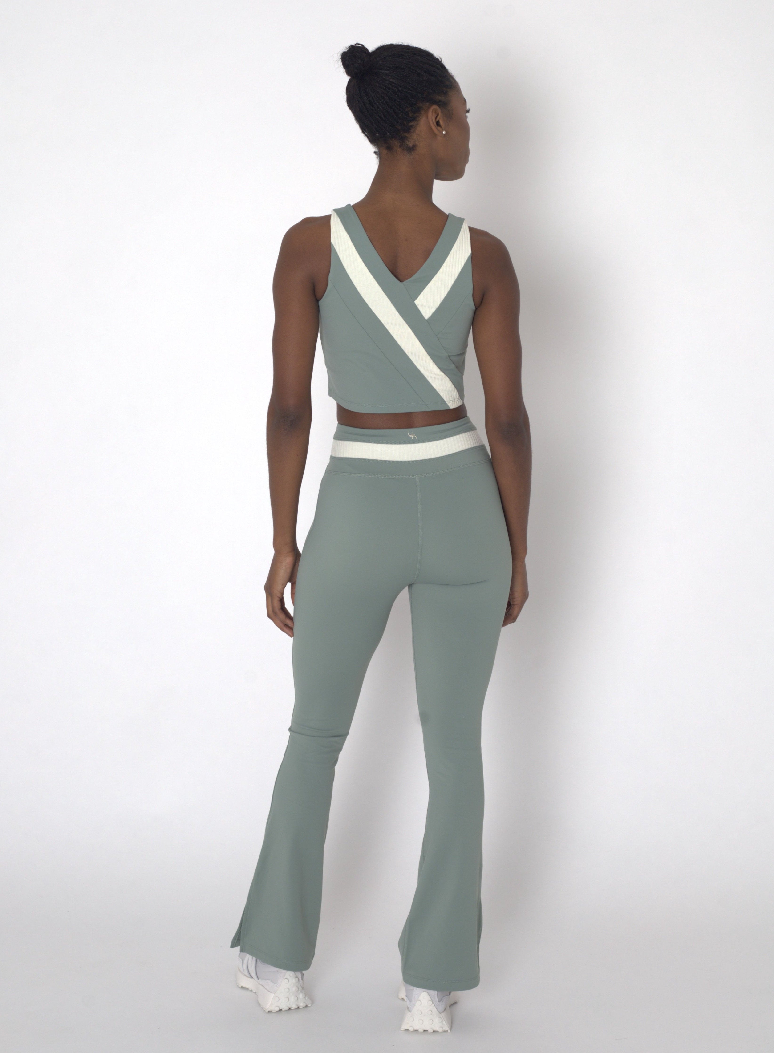 Embrace comfort and style wherever your day takes you with the YOGAFLOW Back Wrap Cropped Top Duo in Soft Sage.