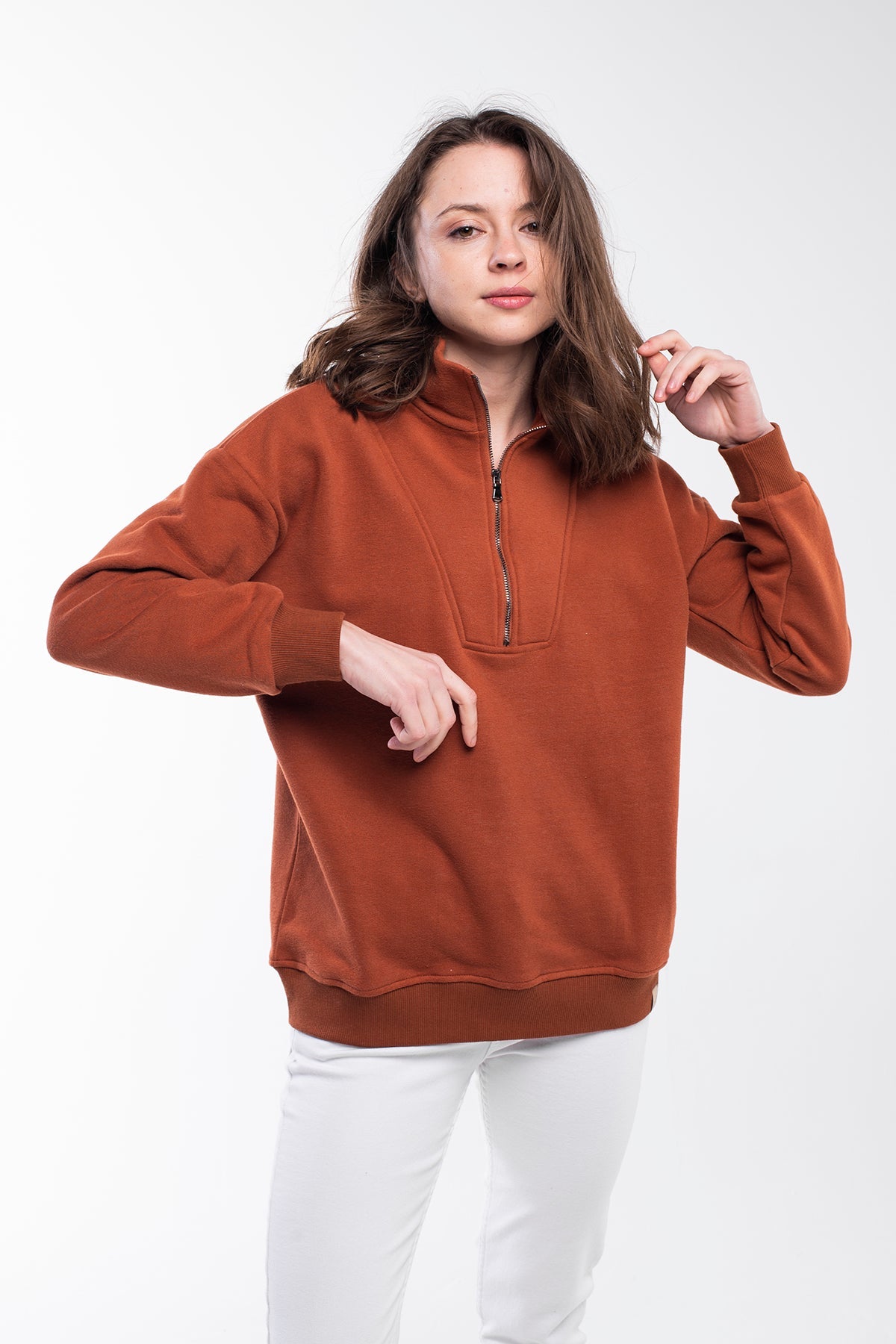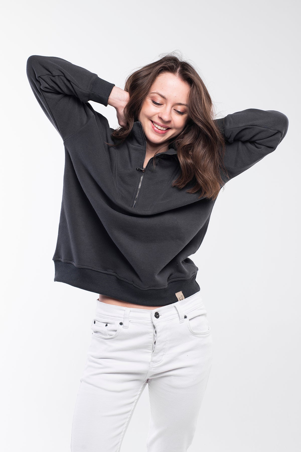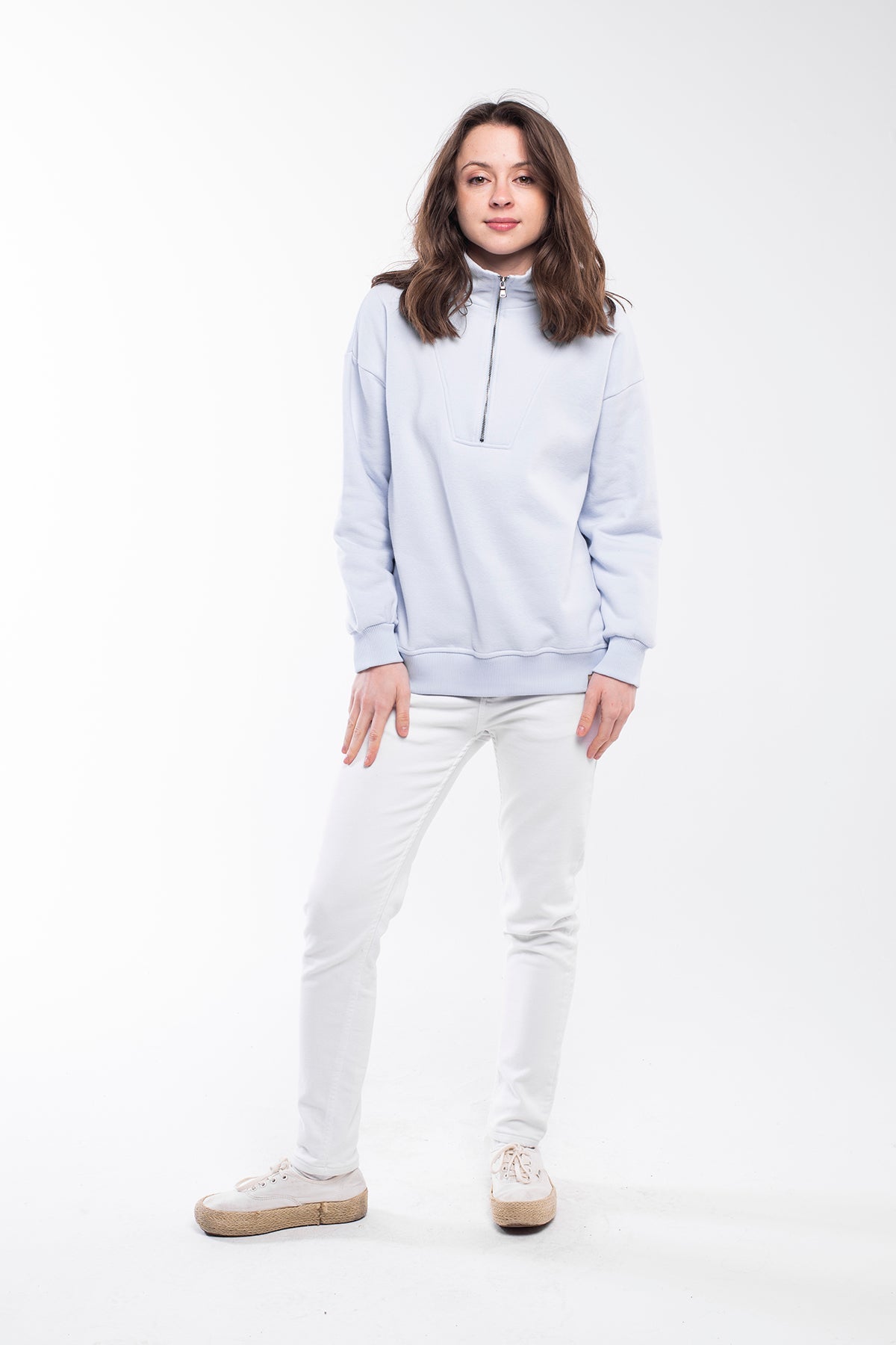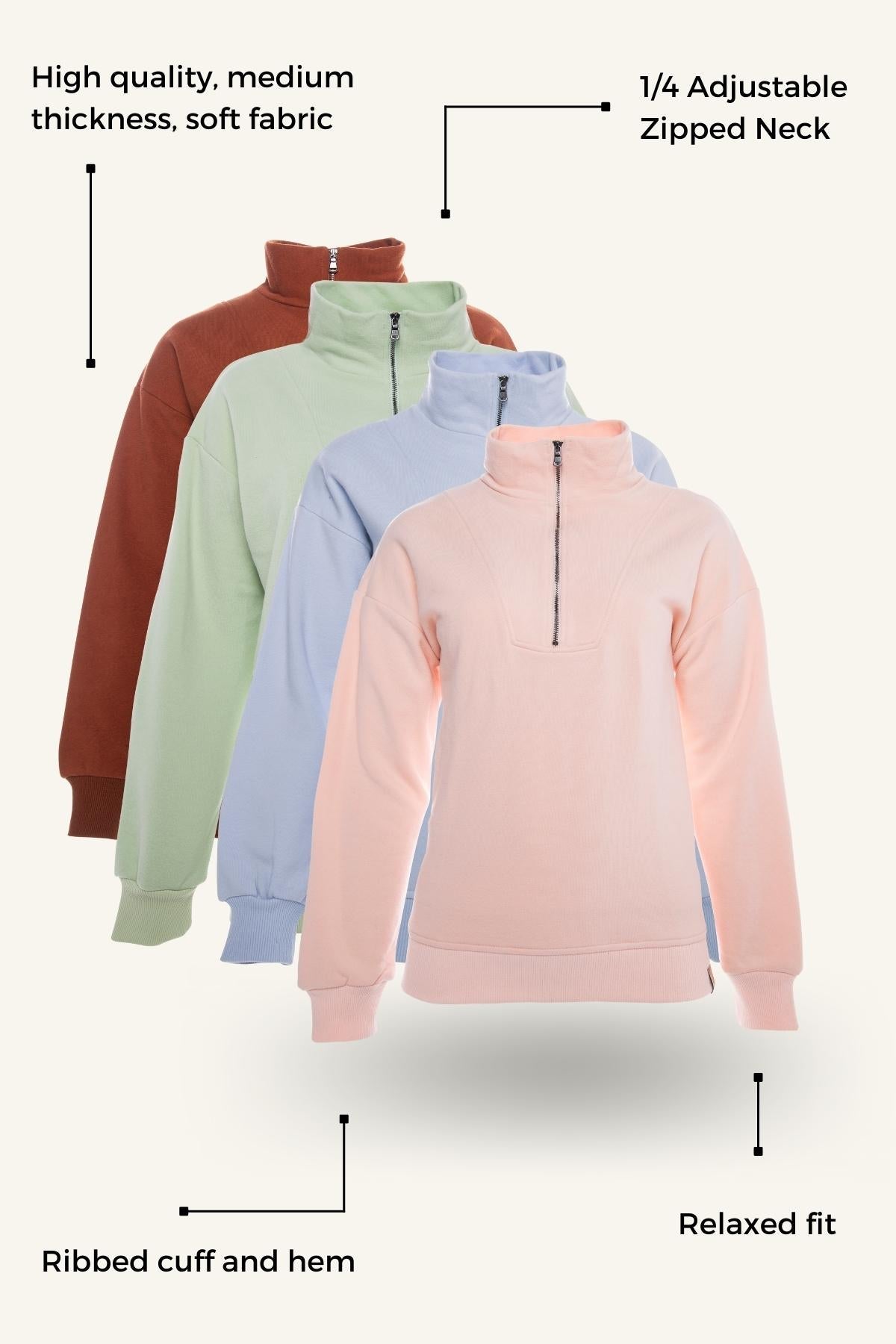 The perfect day-to-day zipped neck sweatshirt. A reinvented crewneck with a bigger chest, and a 1/4-zipped, mid-length collar.
