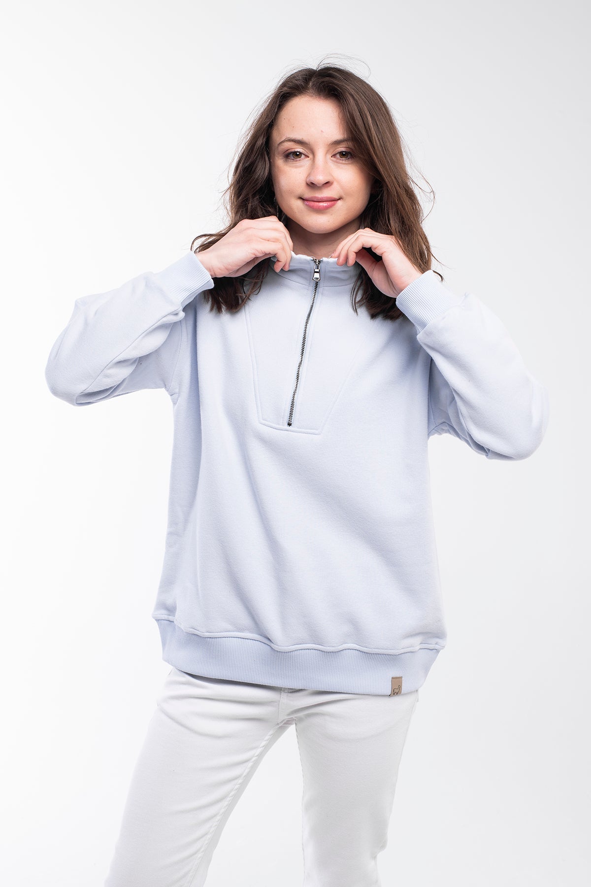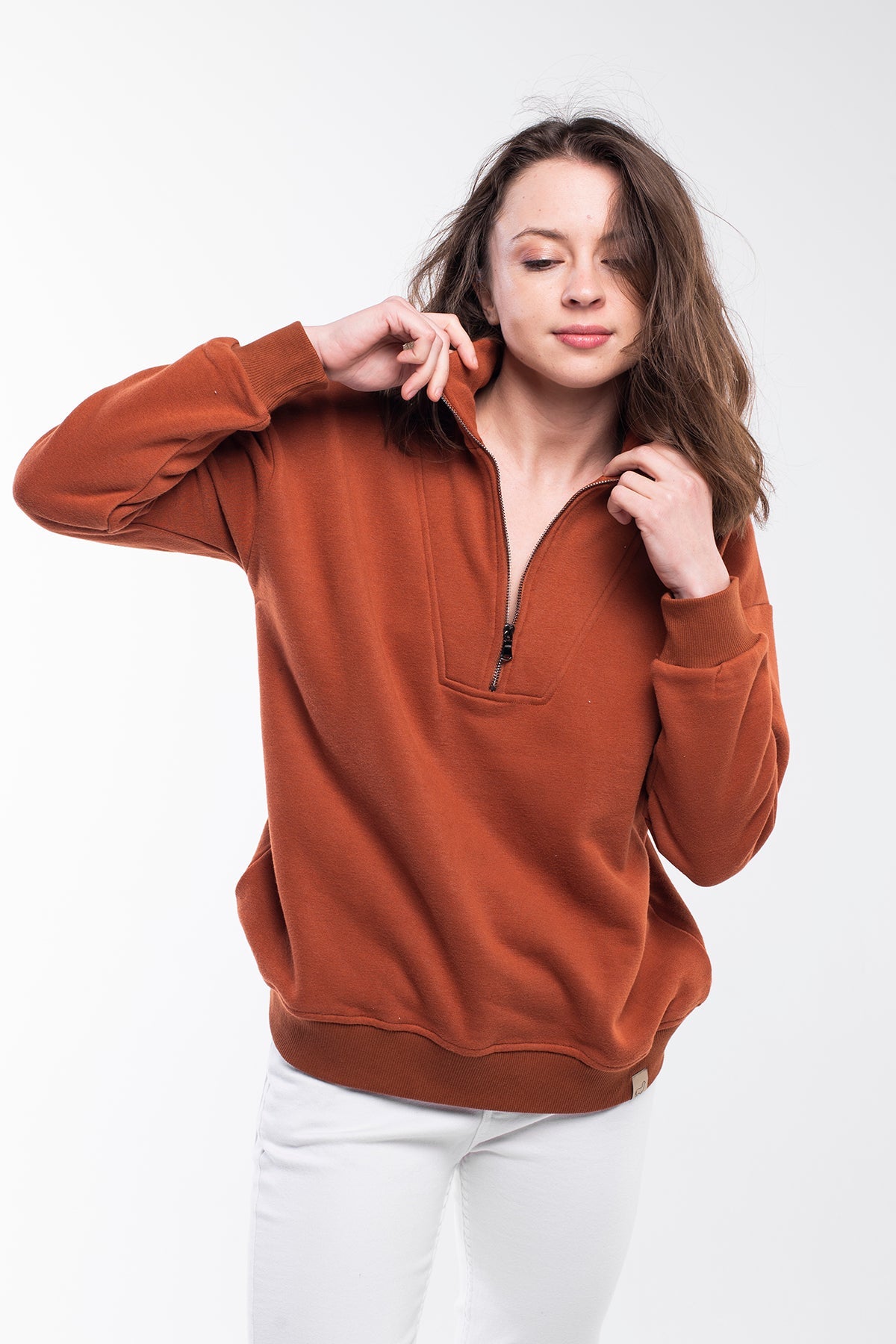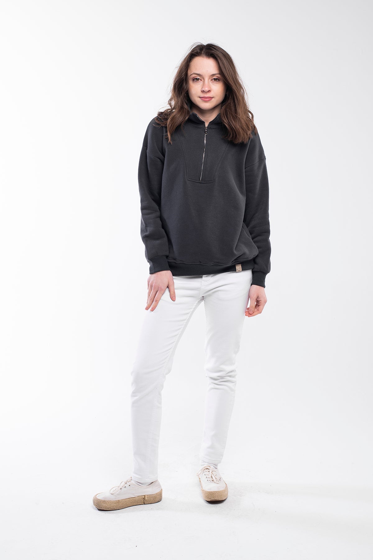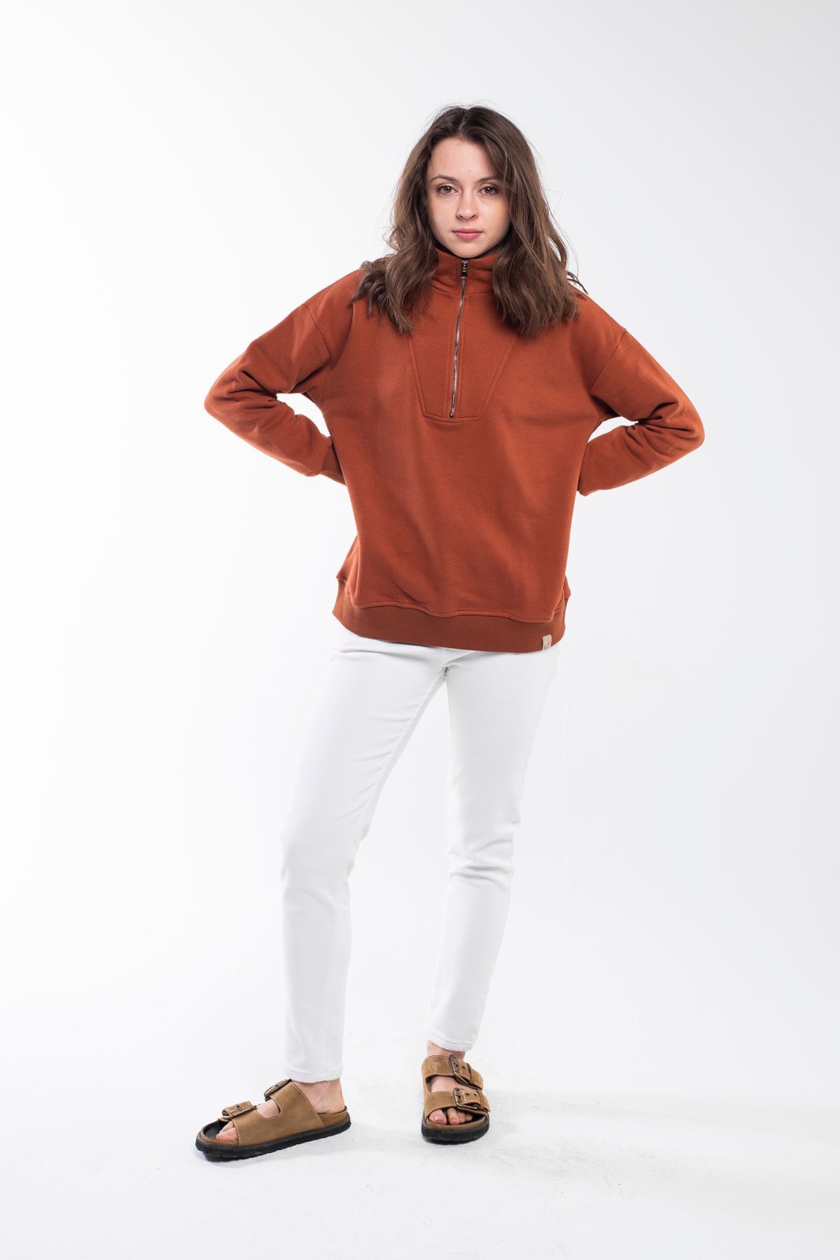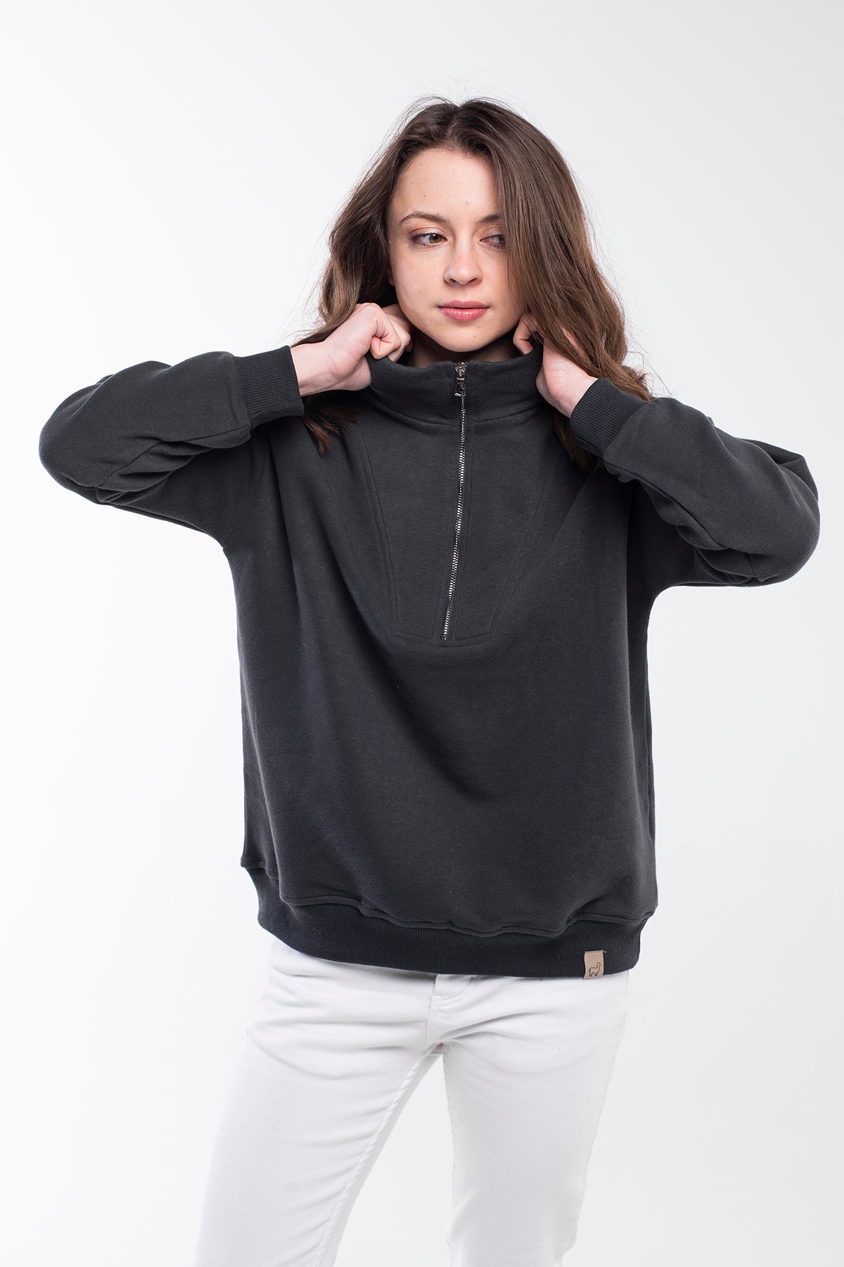 The perfect day-to-day zipped neck sweatshirt. A reinvented crewneck with a bigger chest, and a 1/4-zipped, mid-length collar.